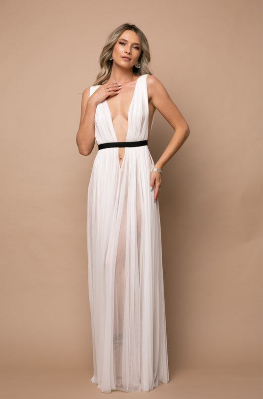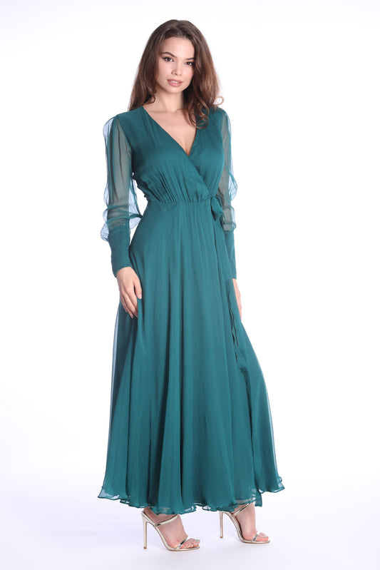 Santorini Cut Out Silk Tulle Dress in Dark Green
